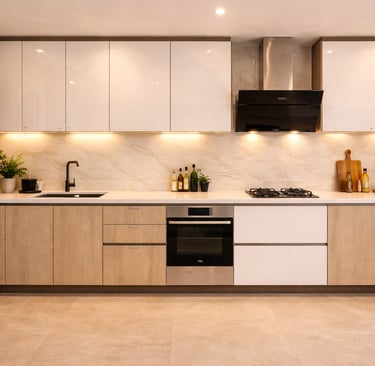 An Inline Shaped Kitchen Design (also known as a straight kitchen) is the best solution for compact spaces and modern apartments. At Display Modular Kitchen and Interior, we design premium inline modular kitchens in Gurugram that are stylish, functional, and perfectly optimized for small spaces.
