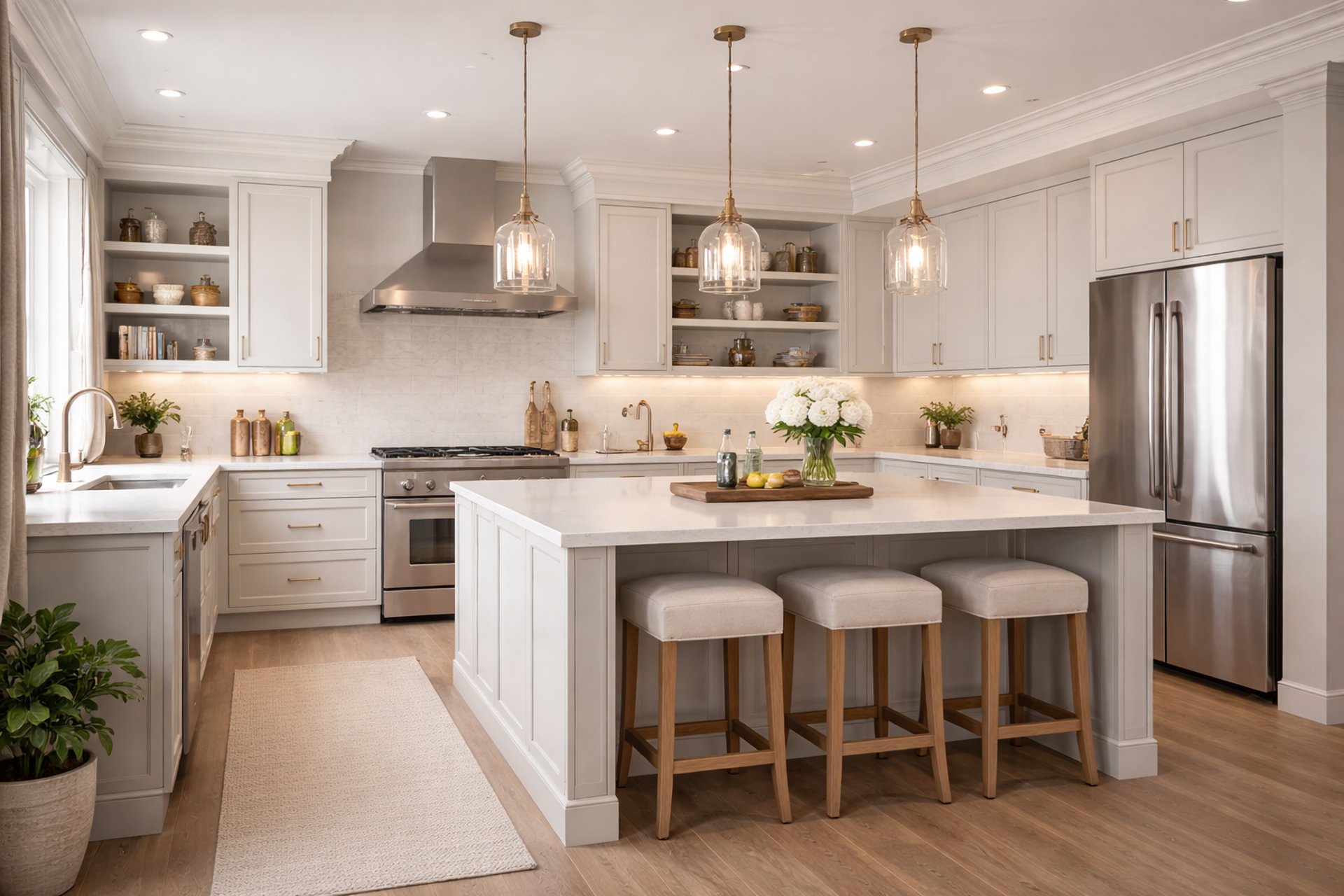 Island kitchens feature a central counter that can be used for cooking, dining, or storage, making it ideal for modern lifestyles and open kitchen concepts.