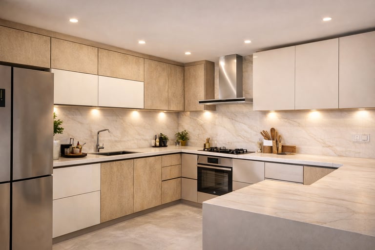 A U Shaped Kitchen Design is one of the most efficient and spacious kitchen layouts, ideal for maximizing storage and workspace. At Display Modular Kitchen and Interior, we design premium U shaped modular kitchens in Gurugram that offer a perfect balance of functionality, style, and comfort.